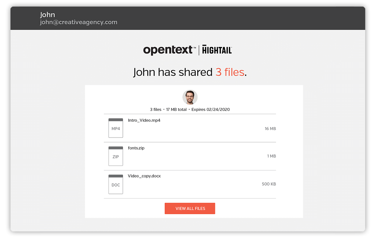 When you send files, your recipients will receive an email notification with a link to access the files you’ve shared with them.