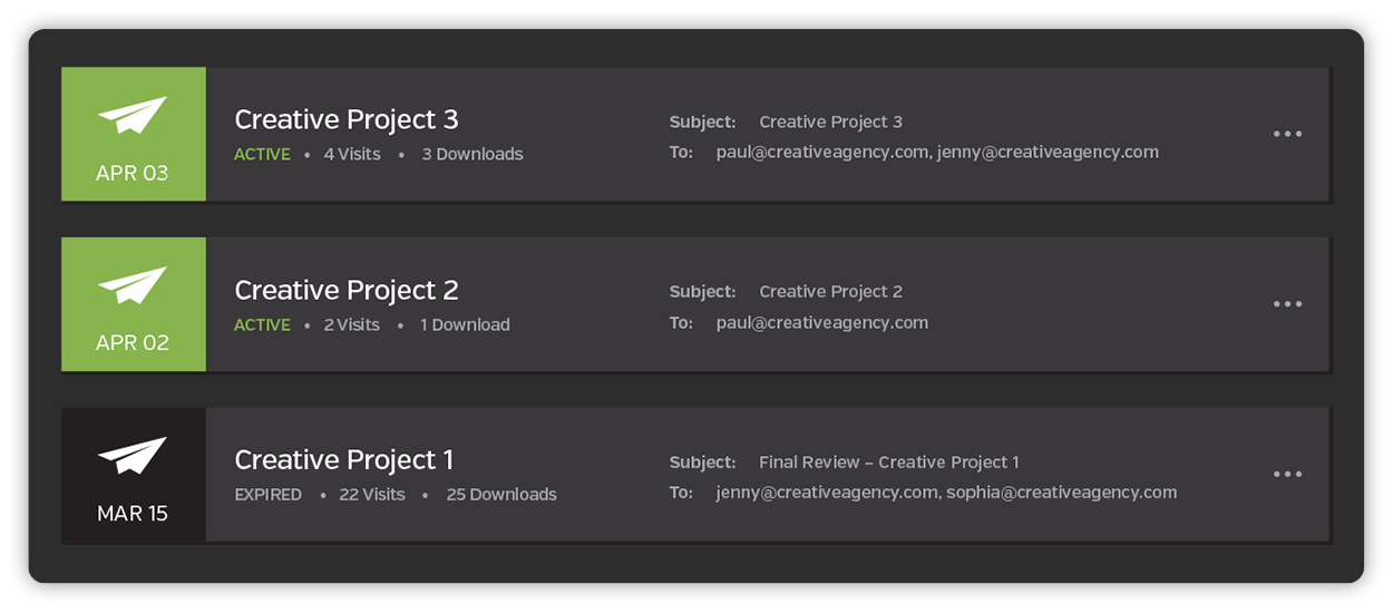 See when files have been delivered and downloaded in the Send tracker, revisit files that have been shared with you and get notified when someone has accessed your files.